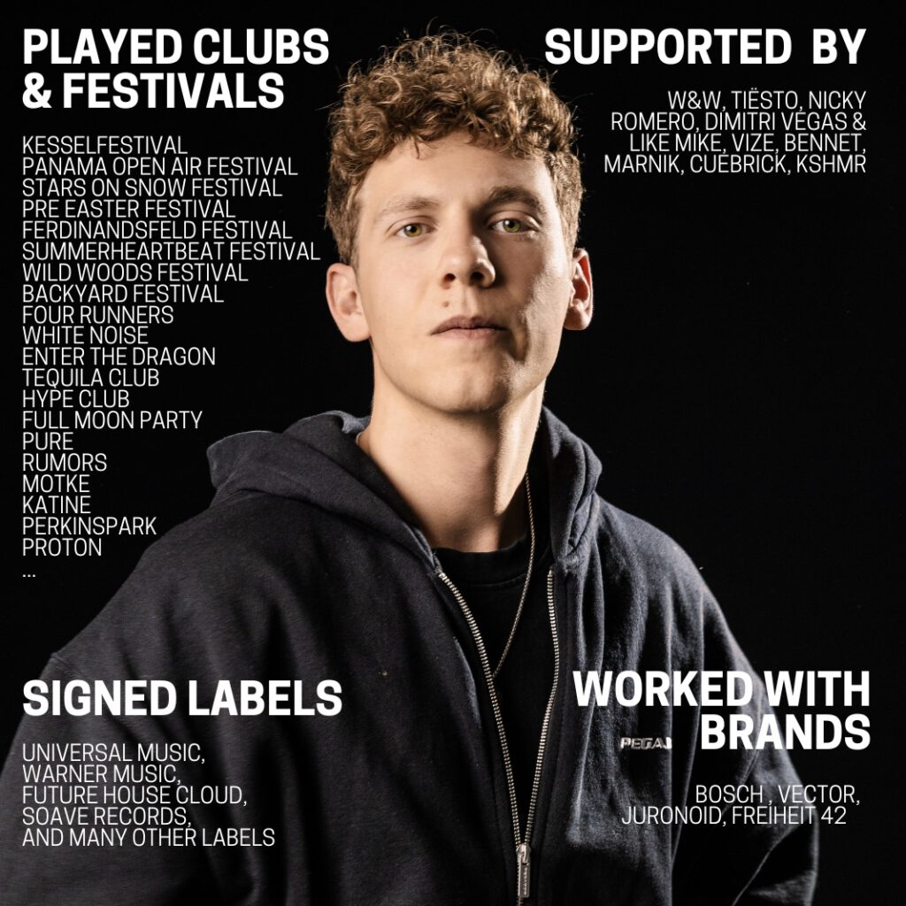 Gabriel Wittner (26) ist ein deutscher DJ, Sänger, Songwriter und Musikproduzent aus Stuttgart, der sich mit seinen einzigartigen Mashups und Remixen einen festen Platz in der elektronischen Musikszene erarbeitet hat. Bekannt wurde er vor allem durch kreative Remixe, Cover und Mashups, die viral gingen und ihm eine stetig wachsende Fanbase verschafften. Doch Gabriel überzeugt nicht nur mit Neuinterpretationen bekannter Tracks: Er veröffentlicht regelmäßig eigene Produktionen, in denen er seine musikalische und gesangliche Handschrift einfließen lässt. Seine innovativen Sounds, sein Gespür für Trends und seine klare künstlerische Vision haben ihm die Aufmerksamkeit namhafter Größen der Branche eingebracht. Mit über 100.000 Fans und Followern auf verschiedenen Plattformen hat sich Gabriel eine treue Community aufgebaut und seine Reichweite weit über die deutschen Grenzen hinaus erweitert.